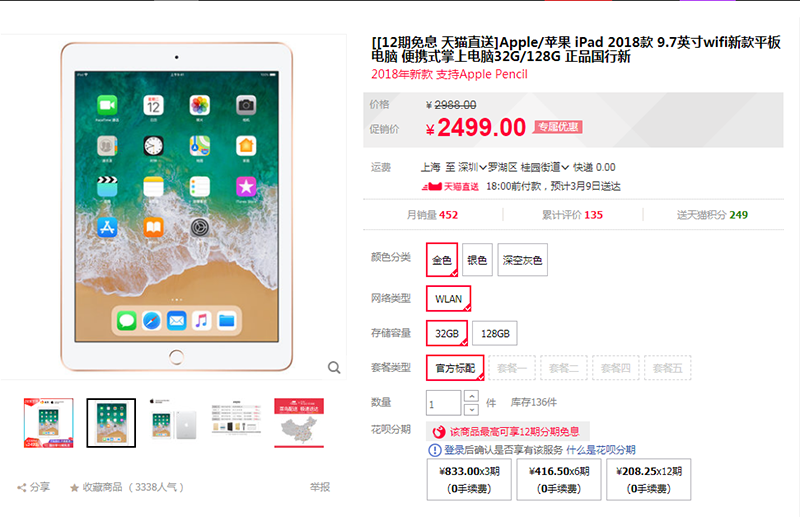 價值2499的 iPad 2018款 9.7英寸wifi新款平板電腦 便攜式掌上電腦32G/128G 正品國行新