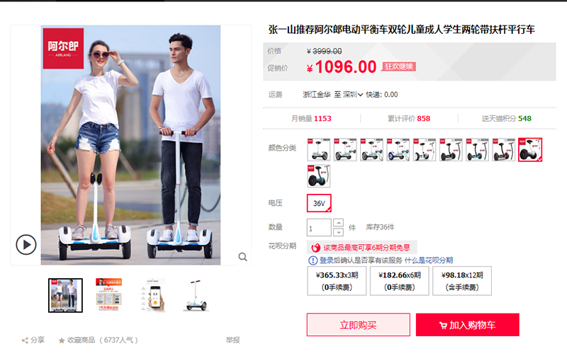 價值1096元的阿爾郎電動平衡車雙輪兒童成人學生兩輪帶扶桿平行車