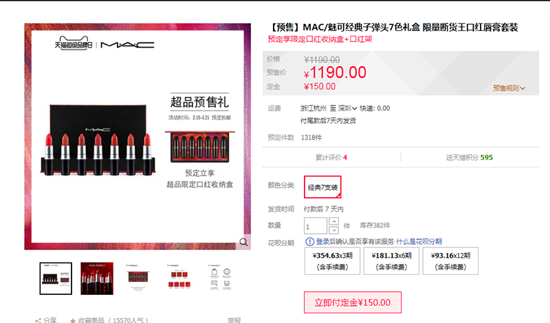 價值1190元的MAC/魅可經典子彈頭7色禮盒 限量斷貨王口紅唇膏套裝